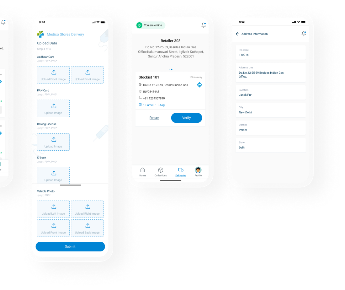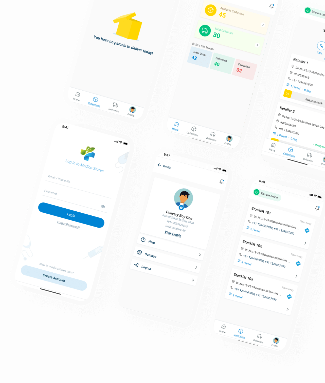 The idea of the Medico Stores was to build an online medicine order app that will connect four parties in the healthcare space and provide a convenient marketplace. Depending on the party, the app was designed to: