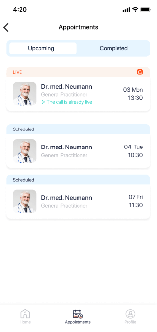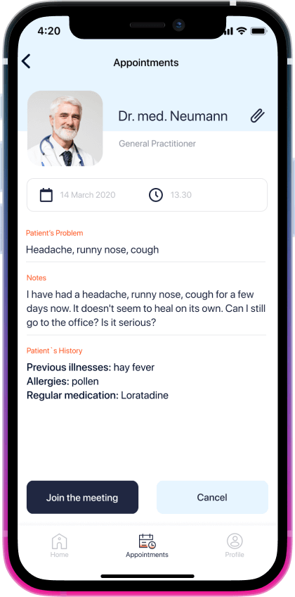 One of the main challenges through the technical implementation of the product was to establish encrypted video & audio calls and secure patients’ data on the backend – we used a range of available industry-specific technologies following healthtech best practices.