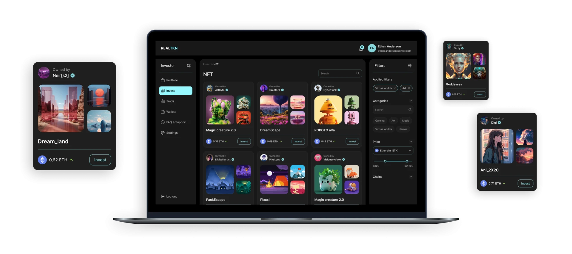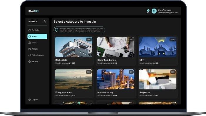 For REALTKN we used MPC Wallets and zero-knowledge proofs to enhance data security and privacy. With the help of features such as reward distribution, primary purchase, and Automated Market Maker (AMM), the client intends to open new horizons for the development of the digital economy and blockchain projects.