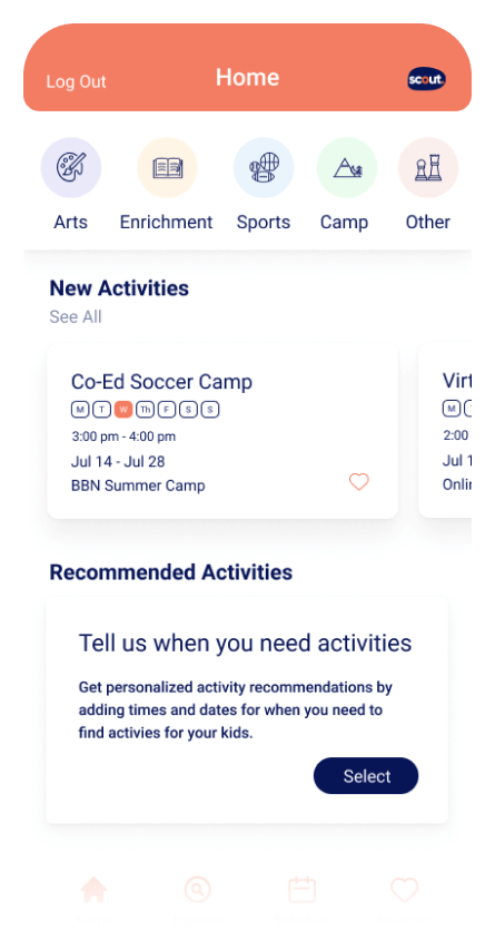 Scout is the first B2B app designed to put productive time back into working parents’ lives by providing fast, easy access to thousands of quality kids’ activities.