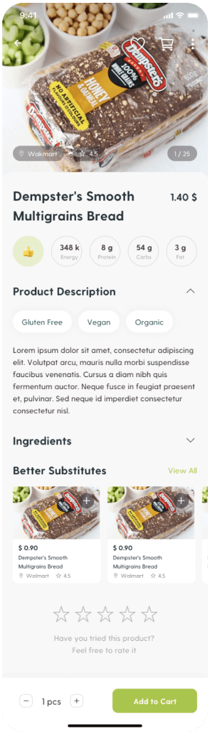 After collecting every feature our client wants us to follow, we curated a team of dedicated developers with relevant experience. As a result, we produced a mobile application that allows users to create their own profiles and get through all products they usually see on the shells at local stores. While each item can be checked for energy value, the filters available in the app help customers to avoid unwanted products that may cause allergies, intolerance, or eliminate animal-based products in their search. It was also hard to import recipes from allrecipe.com and bbcgoodfood.com on our platform, but we overcame this problem within weeks, and now the app contains everything they need to cook dishes with the best guides available at the market.