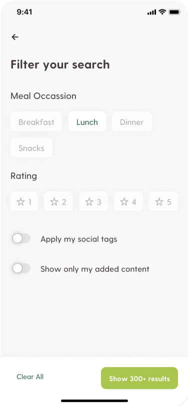 In addition, the app should contain energy value for every item, a list of recipes, and even allow customers to select specific dietary requirements to get foods according to their allergies, intolerance, or religion.