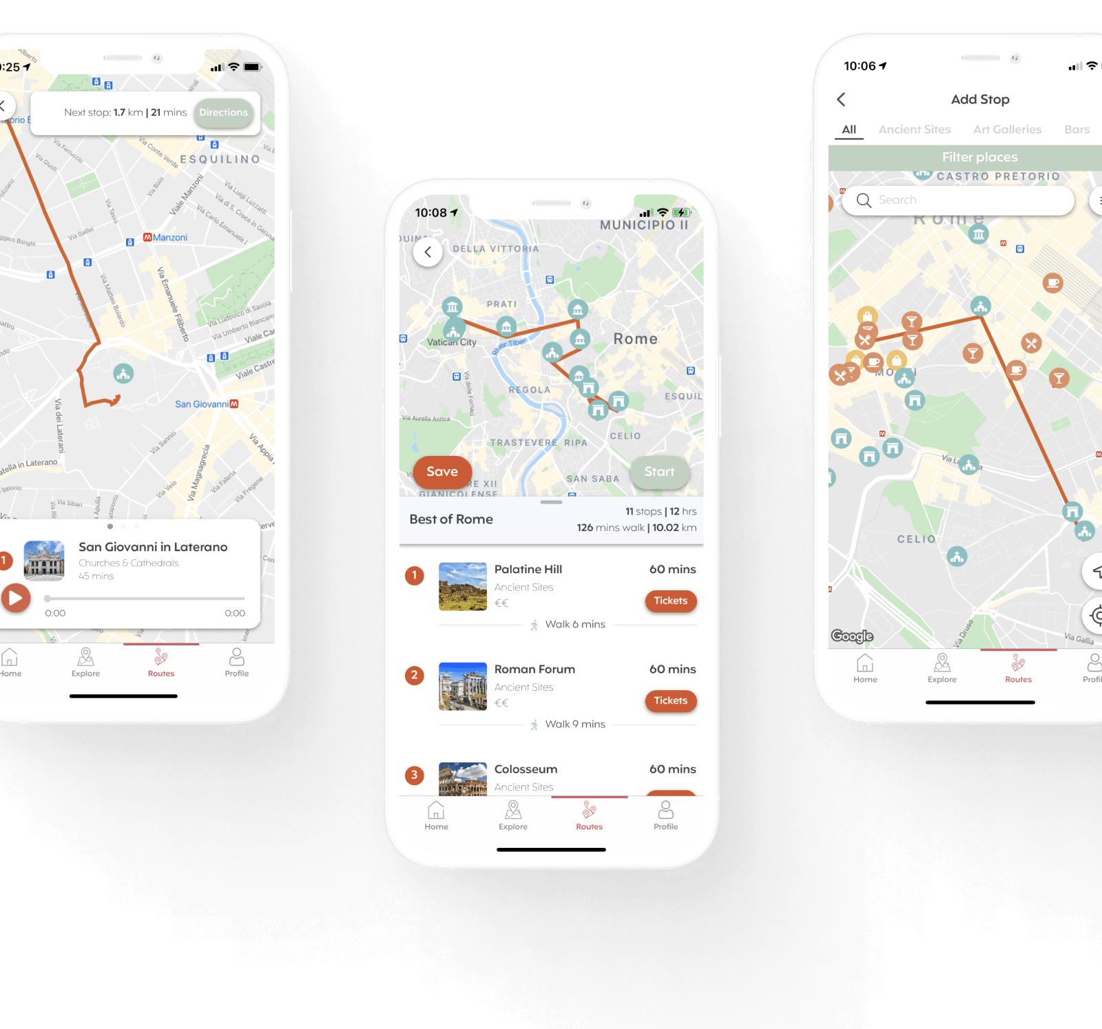 The map can be opened on the whole screen, so nothing can disturb the route. Users can easily stop the route if they find something on their way and want to enjoy the walk later. They can always see where they are located, reducing stress if the internet connection breaks down.